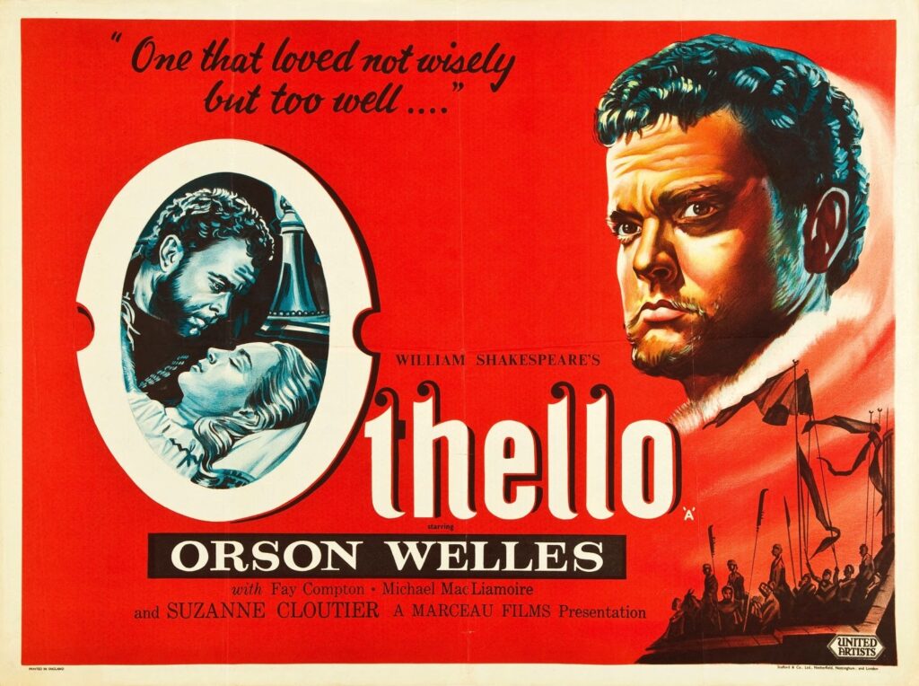Shakespeare is the second most sold author in the world, just under the Bible and above Agatha Christie.  There are many wonderful film adaptations of all his plays, but one of the most interesting is Orson Welles’ Othello made in 1952.  Welles directs it and stars as the titular character.  Although Hollywood was moving away from the film noir era, Welles’ take on Othello is an incredible film noir set in early 1600’s Italy.